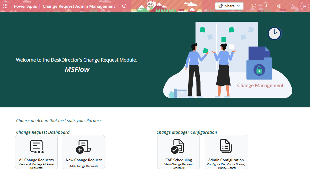 - Enable the CM - [Powerapps] - Schedule CAB Change Request Discussion flow