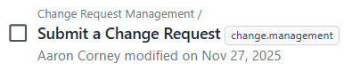 As part of our Solution Library deployment, a Submit a Change Request form was made available: