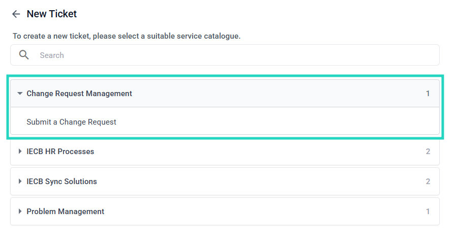 - Create a new Service Group or update an existing Service Group to include the Submit a Change Request form