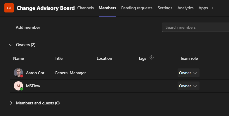 - Your CAB Members will automatically populate based on the Members of your Change Advisory Board Team Channel