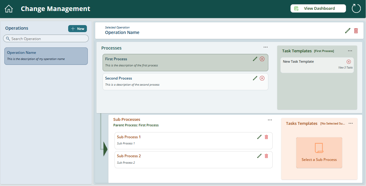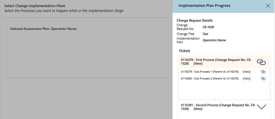 - (Optional) Use Change Request Implementation Plans: Leverage an Operation from your Service Orchestrator, creating child Tickets, Tasks, and Subtasks for the change, with central visibility of each ticket's status: