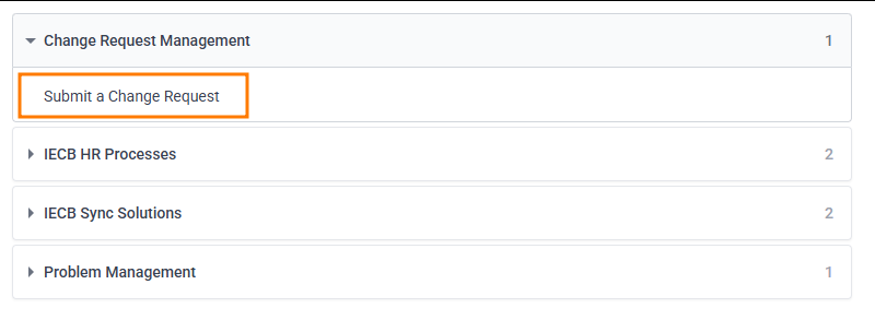 - Service Type: This will allow users to submit change requests and guide them through adding all the required information for a change request.