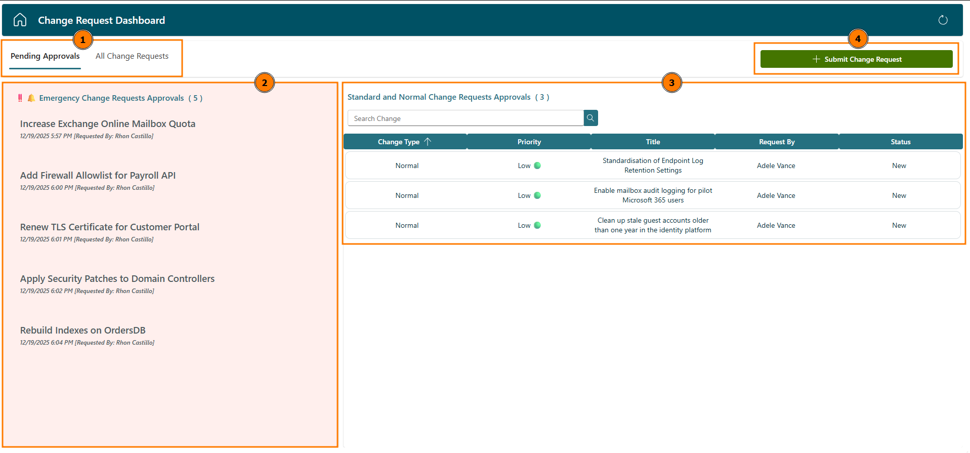 - Create a new change request directly from the dashboard.