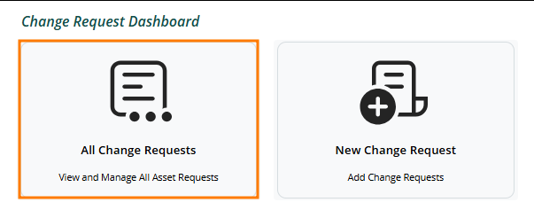 From the landing page on your change management app, you'll have two options for the Change Request Dashboard. We'll go through both of these, starting with the change request list: