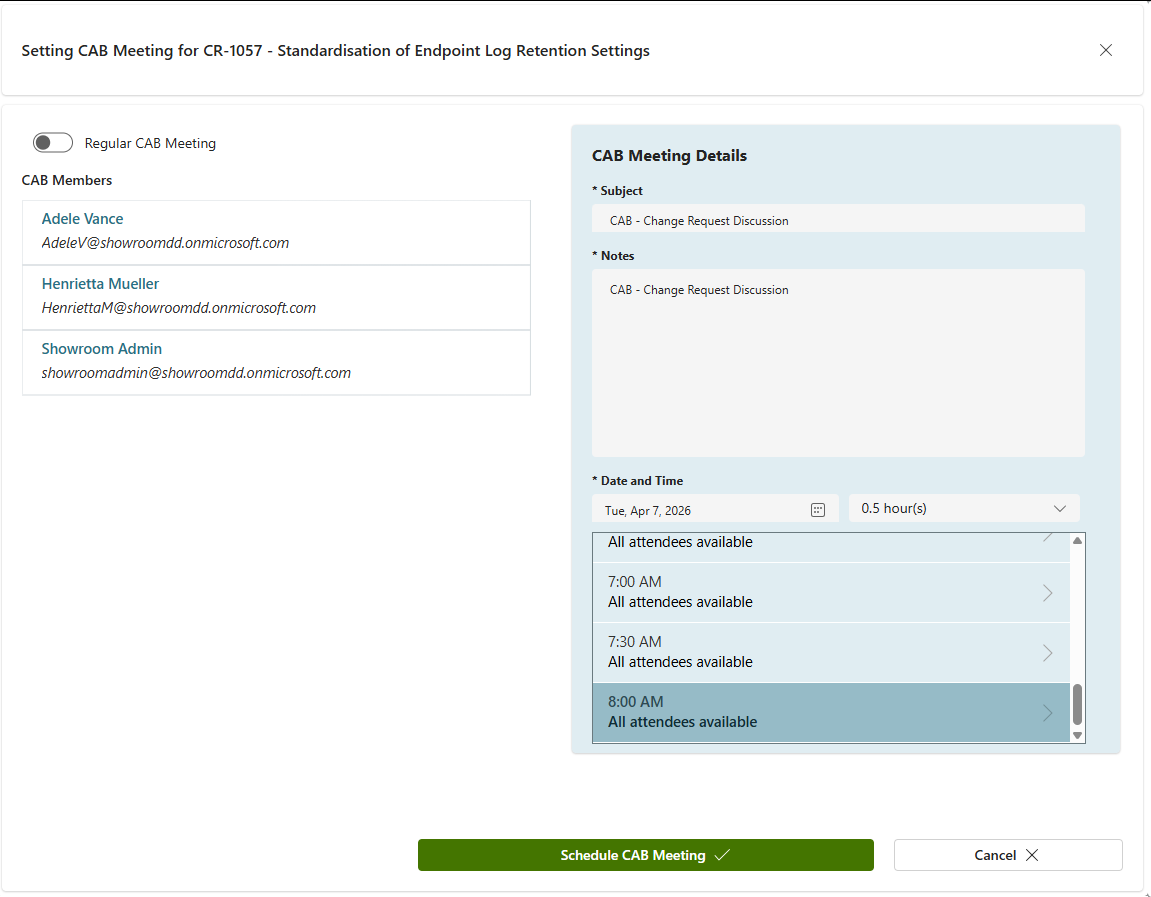 CAB Meeting Scheduling - From Change Request