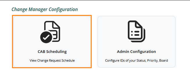 CAB Meetings can be scheduled from the Change Management app. To get started, select CAB Scheduling from the main landing page: