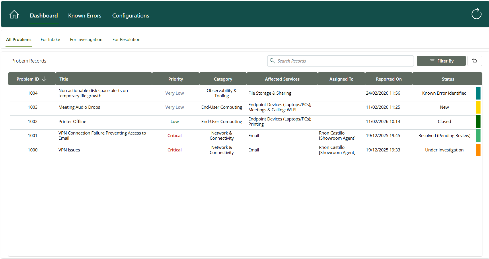 The Problem Management solution provides a centralised Power App for recording, investigating, and tracking recurring issues end-to-end.